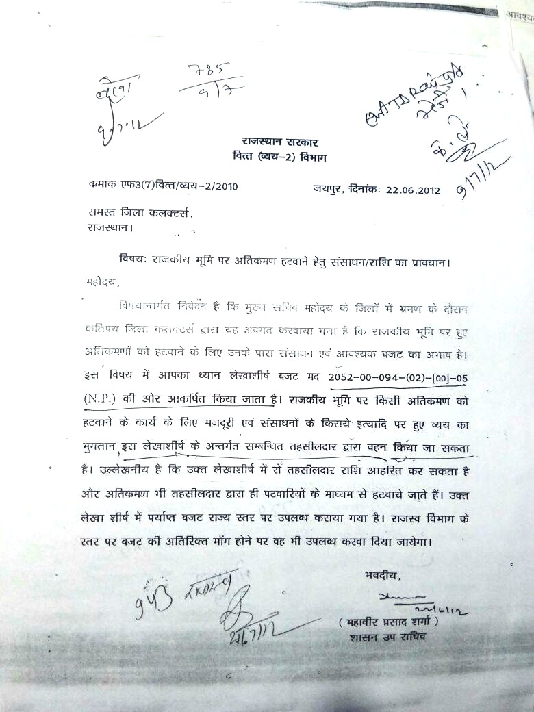 | 397 | अतिक्रमण हटाने के सम्बन्ध में संसाधन उपलब्ध करवाने सम्बंधित | अतिक्रमण हटाने के �... Read more | Guidelines | Aabadi circular | 22 Jun 2012 | 61 | Download |