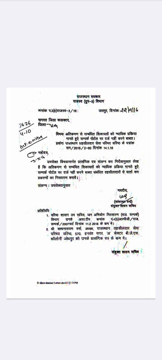 | 358 | अतिक्रमण सम्बंधित शिकायतों को न्यायिक प्रक्रिया मानते हुए संपर्क पोर्टल पर दर्ज नही करने के सम्बन्ध में | अतिक्रमण सम्बंधित ... Read more | Guidelines | Aabadi circular | 22 Sep 2016 | 59 | Download |